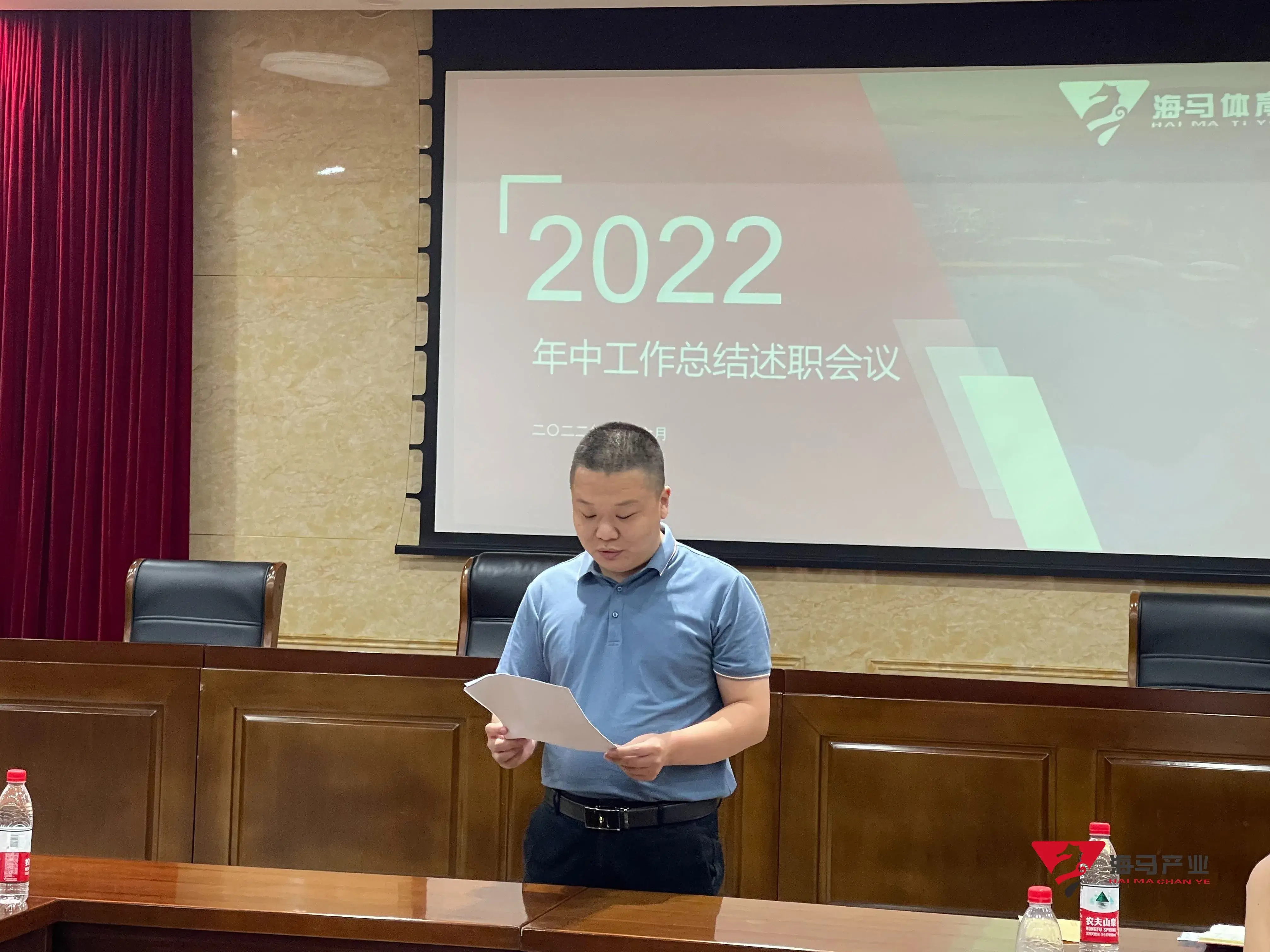 2022年6月29日下午,MK体育文化产业集团在山东省体育中心二楼会议室召开年中工作总结述职会议,会议对上半年工作成果进行了总结汇报,并就下半年重点工作进行部署。总经理王海民出席了本次会议。会议由综合管理部负责人王永健主持。